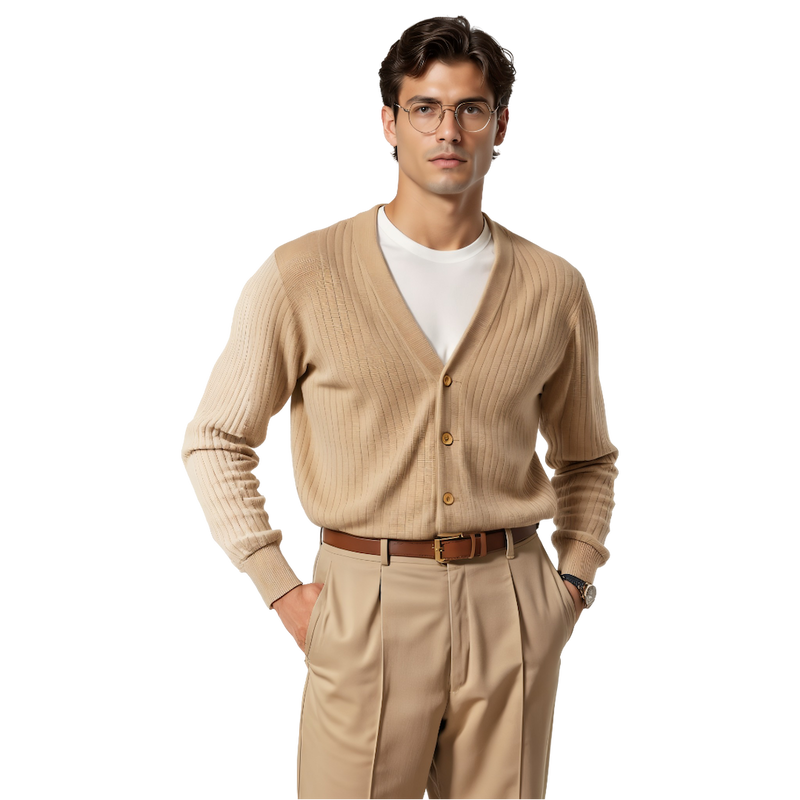 1960s Monte Carlo Knit Cardigan – a sleek, ribbed-knit cardigan that defined effortless European sophistication, perfect for leisurely afternoons along the Riviera.