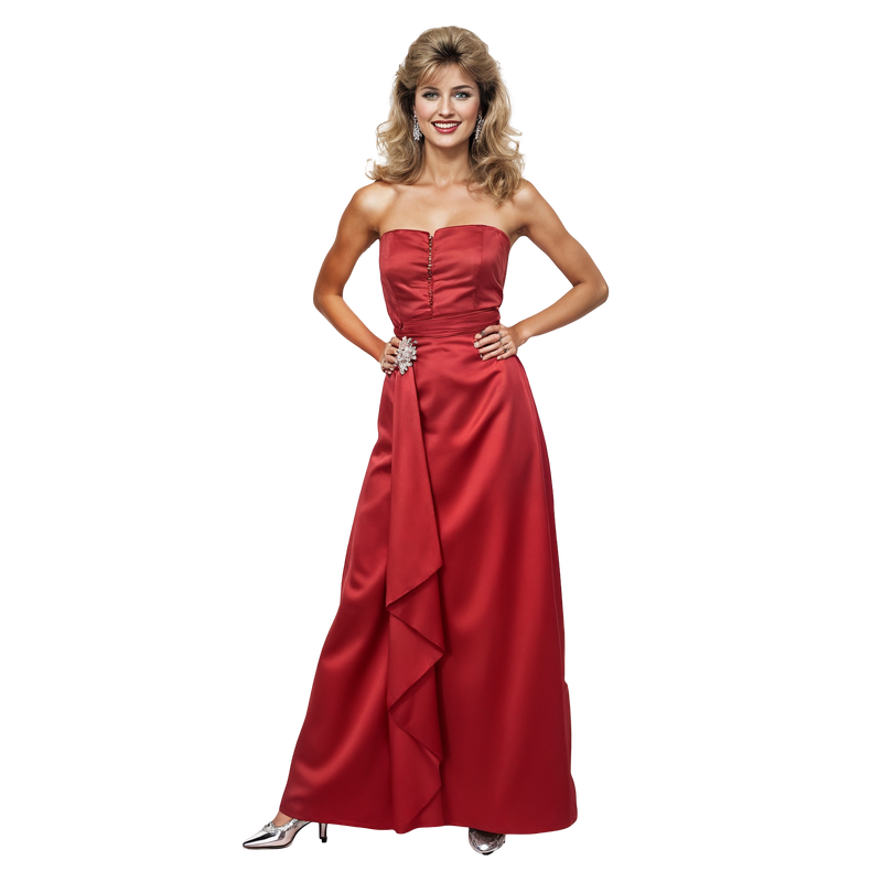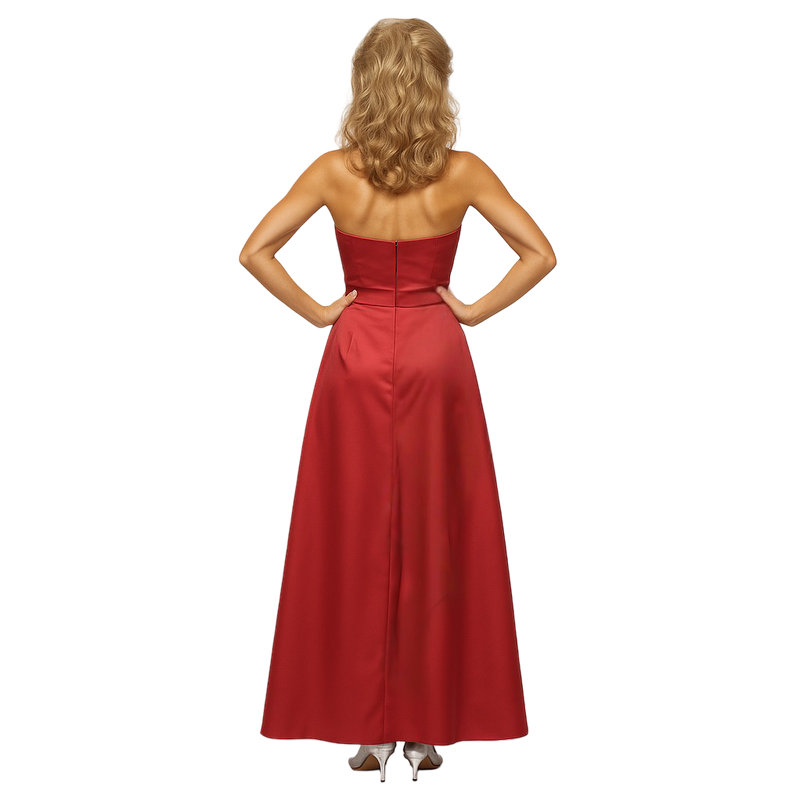 Red ballroom Dress – a Red Ballroom dress embellished with a silver pendant and finished with a sculptural hip knot, ready for New Year’s Eve sets and cabana club encores.