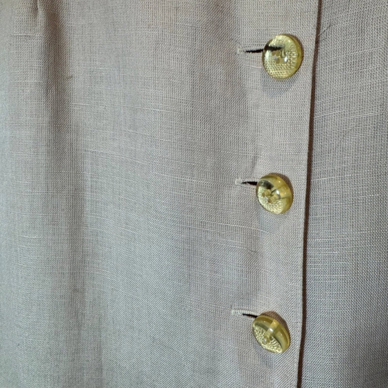 Likely 100% linen with plastic buttons. Sourced and revived in the USA.