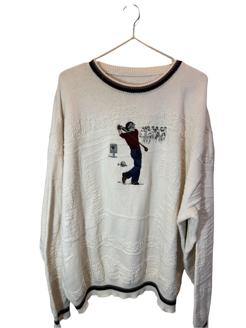 Country Club Sweater, 1960s – a classic knit pullover featuring a striking golf scene, worn for both casual outings and days at the course.