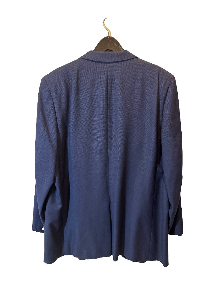 Bel Air Dusk Suit – a midnight navy two-piece with executive sharpness and leading-man confidence. The subtle sheen, strong lapel, and tailored silhouette channel the kind of clout reserved for top billing and backlot ownership.