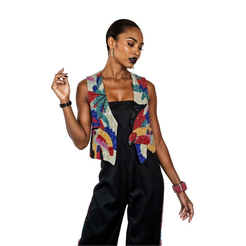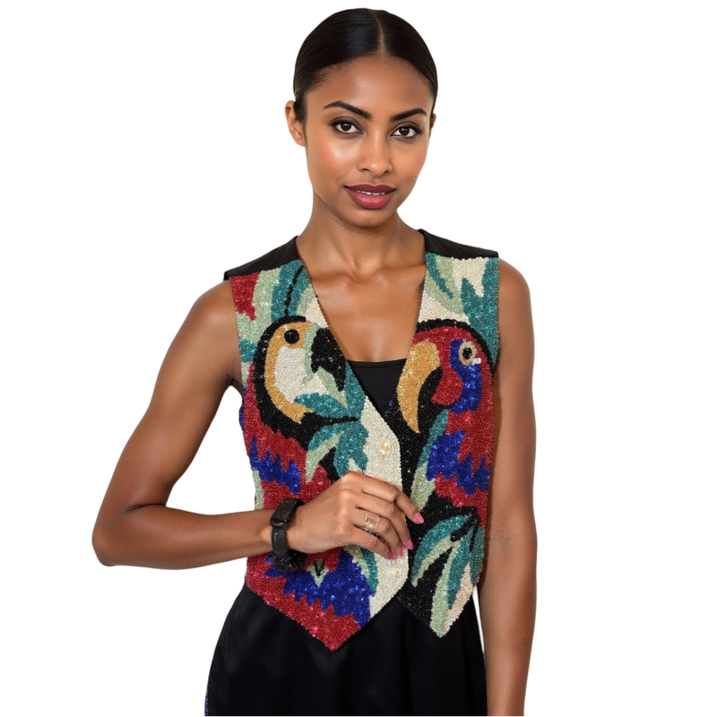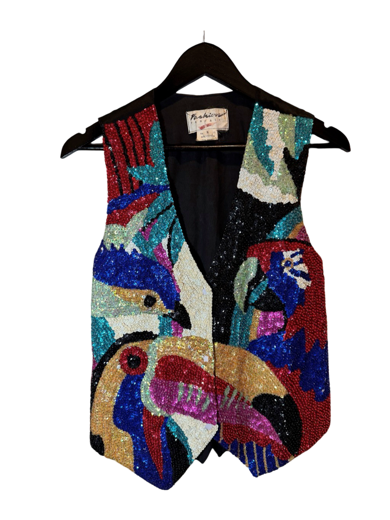 1960s Copacabana Sequin Vest – A dazzling sequin vest inspired by the vibrant energy of the legendary 1960s Copacabana nightclub, made for the limelight.