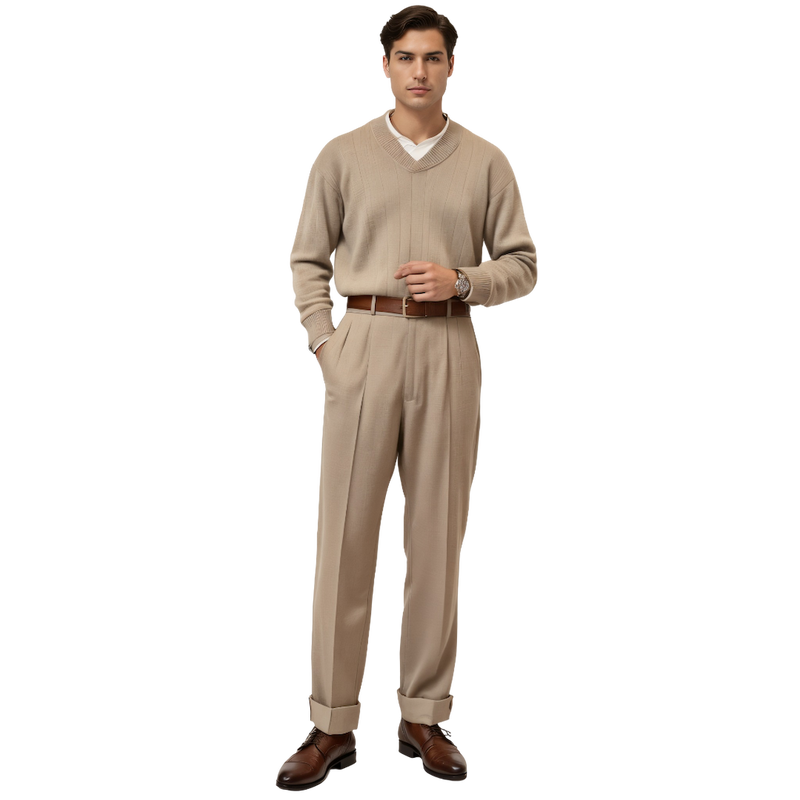 1960s Riviera Club Sweater – a refined knit pullover in a soft beige hue, exuding the effortless sophistication of European resort life and old-money leisure.
