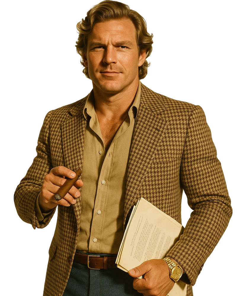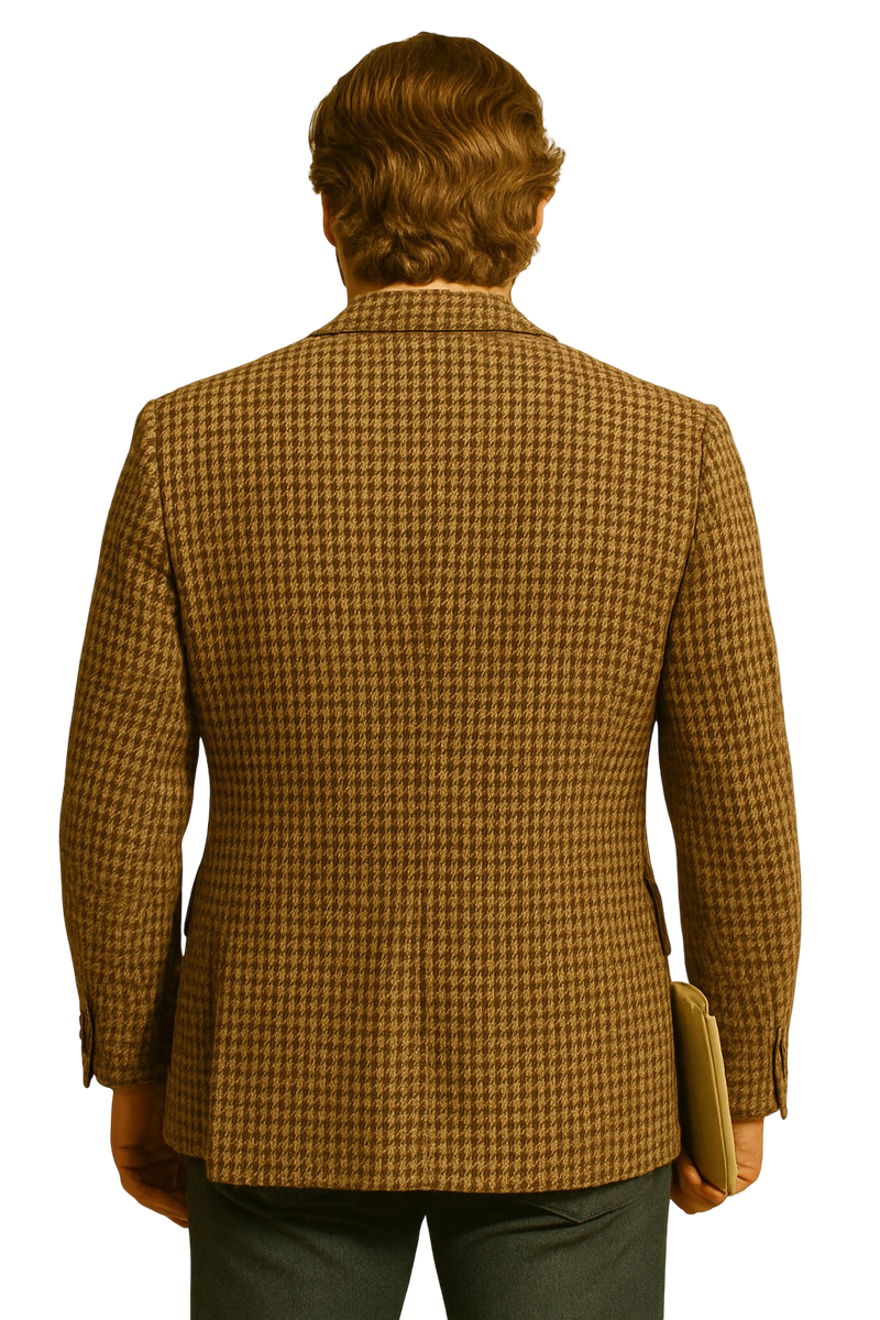 Bel-Air Syndicate Blazer – a heavyweight houndstooth sport coat in brown and tan, tailored with West Coast polish and just enough sharpness for high-stakes studio backrooms and five-martini lunches.