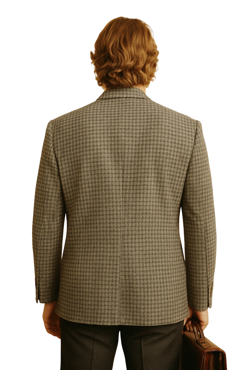 Laurel Canyon Ledger Blazer – a dove-grey houndstooth wool blazer that pairs silver screen charm with boardroom backbone. Built for the mogul who knows that power isn't always loud—sometimes it's just well cut.