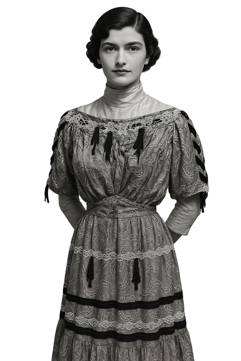 Once worn by pre-war hello girl Eleanor Bell (see her closet), this dress was her favorite for Sunday promenades and telephone exchange duty in the early years of the century.