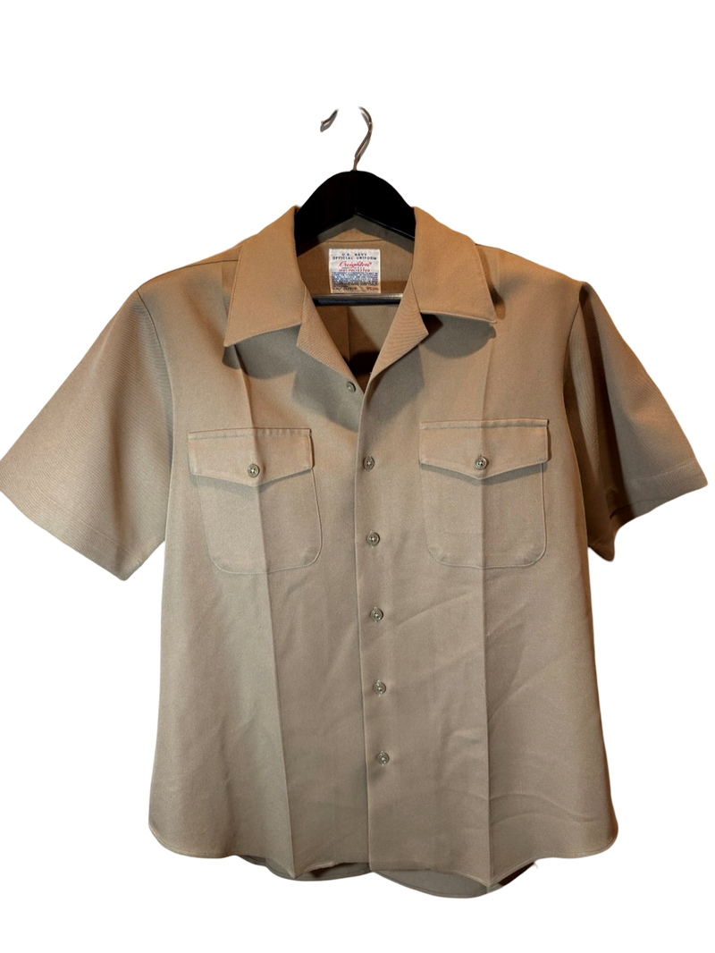 1960s ARMY Sahara Officer Shirt – a structured short-sleeve utility shirt in a refined khaki hue, evoking the sophistication of desert explorers and Riviera adventurers.