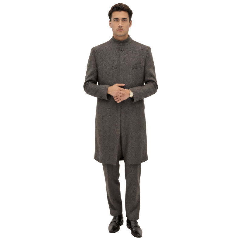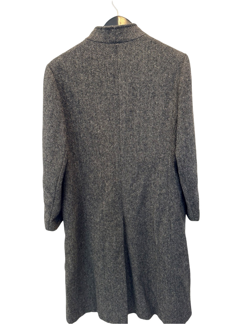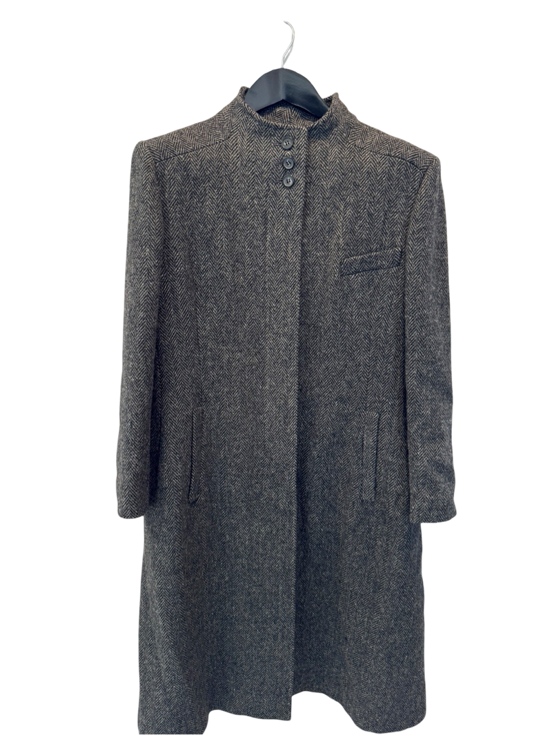 1960s Continental Herringbone Coat – a refined wool overcoat with a mandarin collar and sharp tailoring, exuding the quiet confidence of European aristocracy and bespoke craftsmanship.